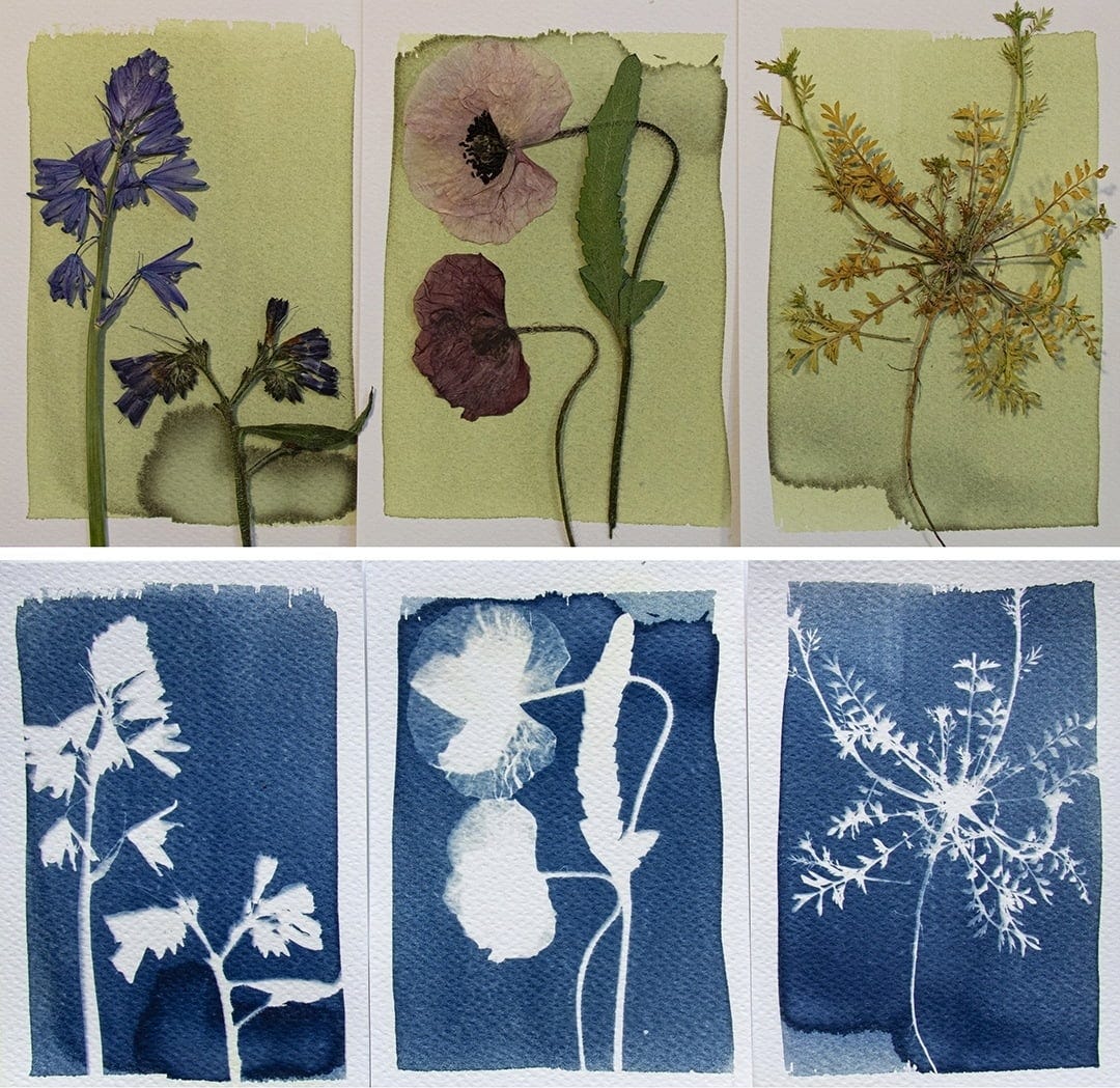 Entdecke die faszinierende Welt der Cyanotypie, eine alte Drucktechnik, bei der mit Sonnenlicht tiefblaue Bilder entstehen.